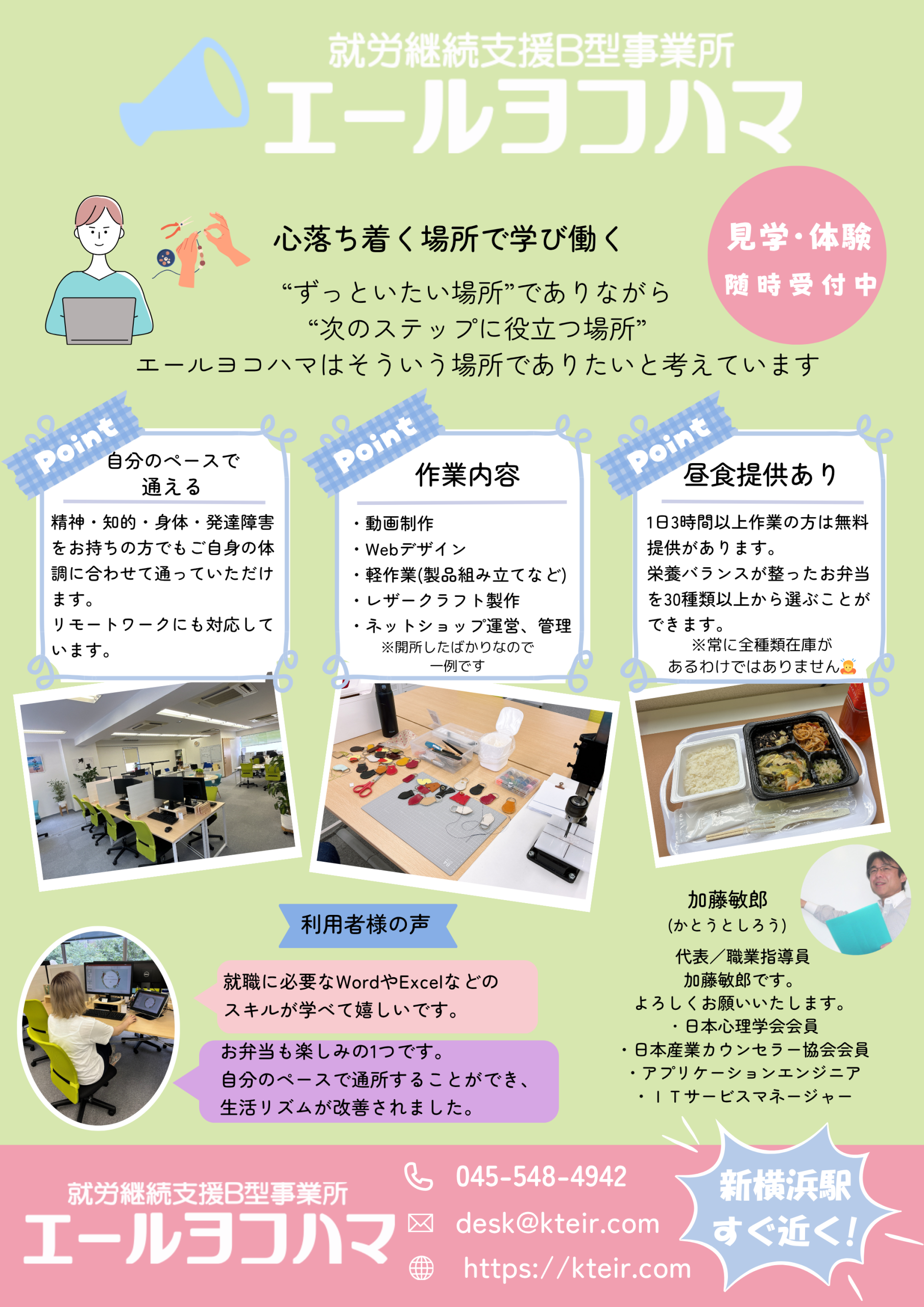 代表/職業指導員 加藤敏郎です。よろしくお願いいたします。